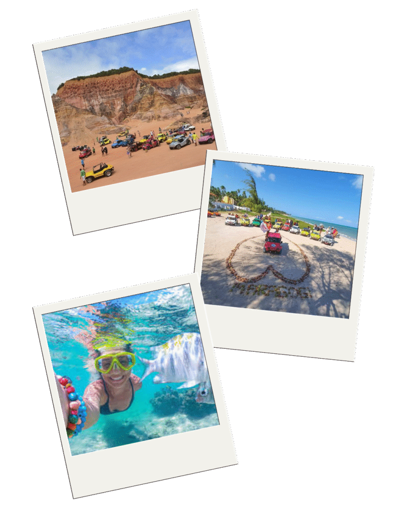 A maioria dos nossos passeios inclui o transporte de ida e volta do seu hotel/hospedagem e o acompanhamento de um guia de turismo credenciado. Custos adicionais como taxas de entrada em parques, passeios de buggy, lancha ou catamarã são opcionais e pagos à parte.